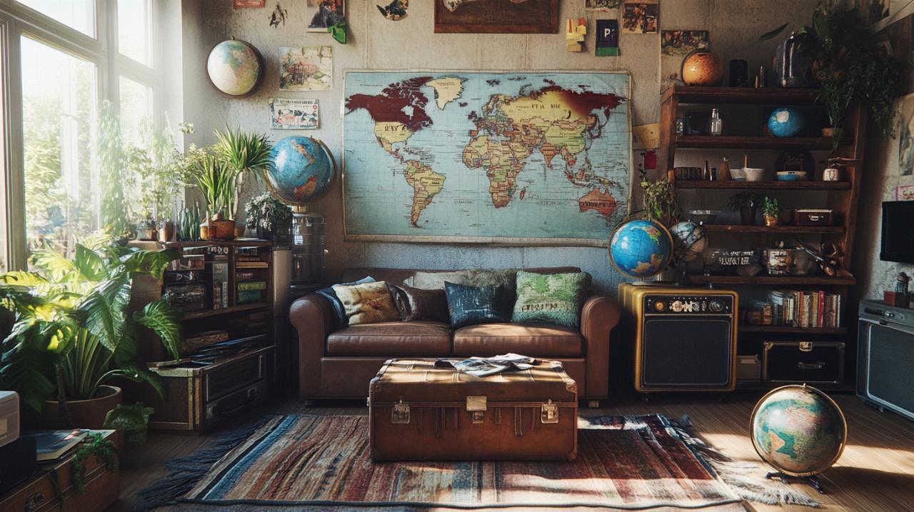 Los mapas antiguos y los elementos cartográficos representan una de las formas más efectivas de transmitir la pasión por los viajes. Colocar un mapamundi vintage de gran formato en una pared principal puede convertirse en el corazón visual del establecimiento, atrayendo miradas y generando conversaciones entre los clientes. Estos mapas pueden presentarse en diversos formatos, desde reproducciones envejecidas en tonos sepia hasta versiones más contemporáneas con colores vibrantes que resalten diferentes continentes. Además de los mapas completos, es posible incorporar fragmentos de cartografía antigua enmarcados, globos terráqueos de distintos tamaños ubicados estratégicamente en estanterías o mostradores, y hasta mapas interactivos donde los clientes puedan marcar los lugares que han visitado. La integración de estos elementos no solo aporta un valor estético considerable, sino que también refuerza la identidad del espacio como un punto de encuentro para amantes de la exploración y el descubrimiento.
